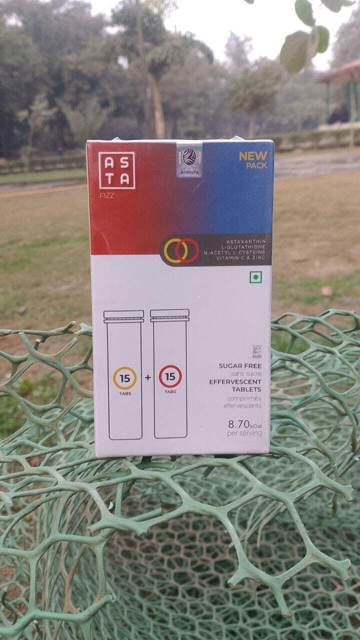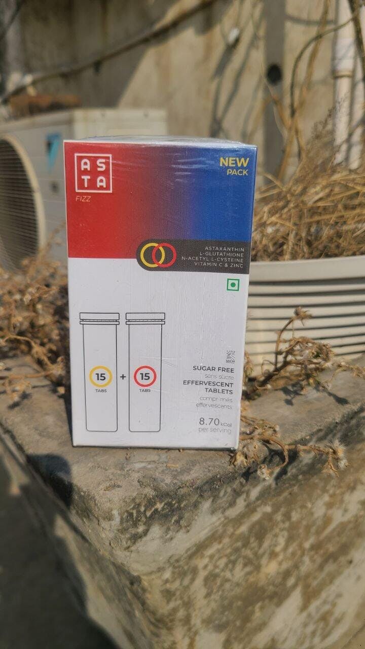 Asta Fizz is a sugar-free effervescent tablet enriched with a powerful combination of Astaxanthin, L-glutathione, N-Acetyl L Cysteine, Vitamin C, and other potent antioxidants. It's designed to enhance skin radiance, reduce dark spots and blemishes, and improve skin tone.