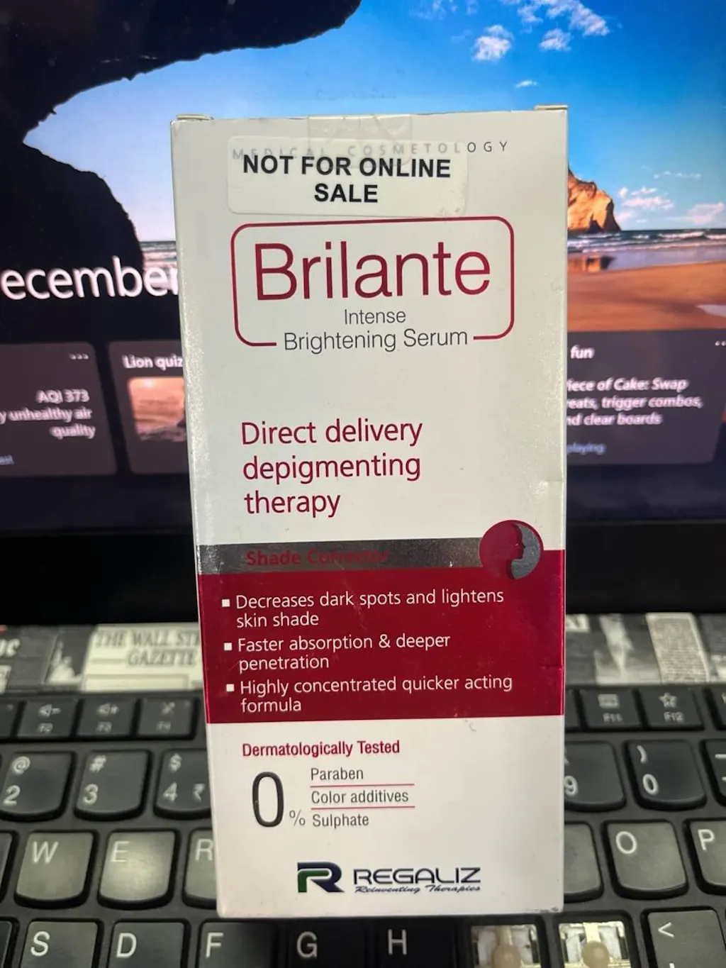 Brilante Intense Brightening Serum is a potent skincare serum formulated to visibly brighten and even out skin tone. It is designed to reduce dark spots, hyperpigmentation, and discoloration, giving the skin a radiant, glowing appearance.