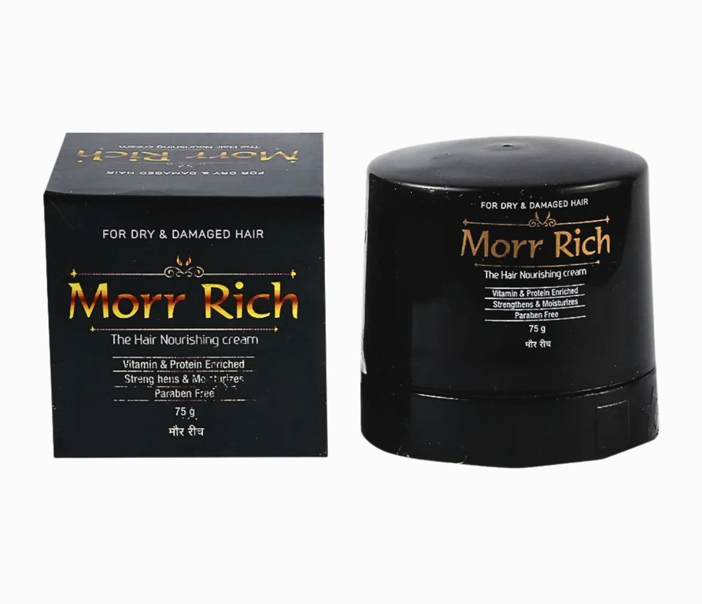 Morr Rich Hair Nourishing Cream is a premium hair care product designed to nourish, hydrate, and repair dry, damaged, or brittle hair. It contains a blend of active ingredients, including natural oils and proteins, that help improve hair texture, enhance shine, and promote healthier, more manageable hair.