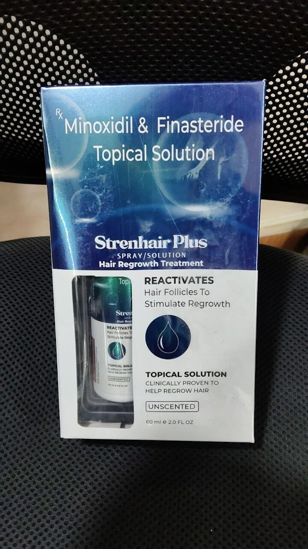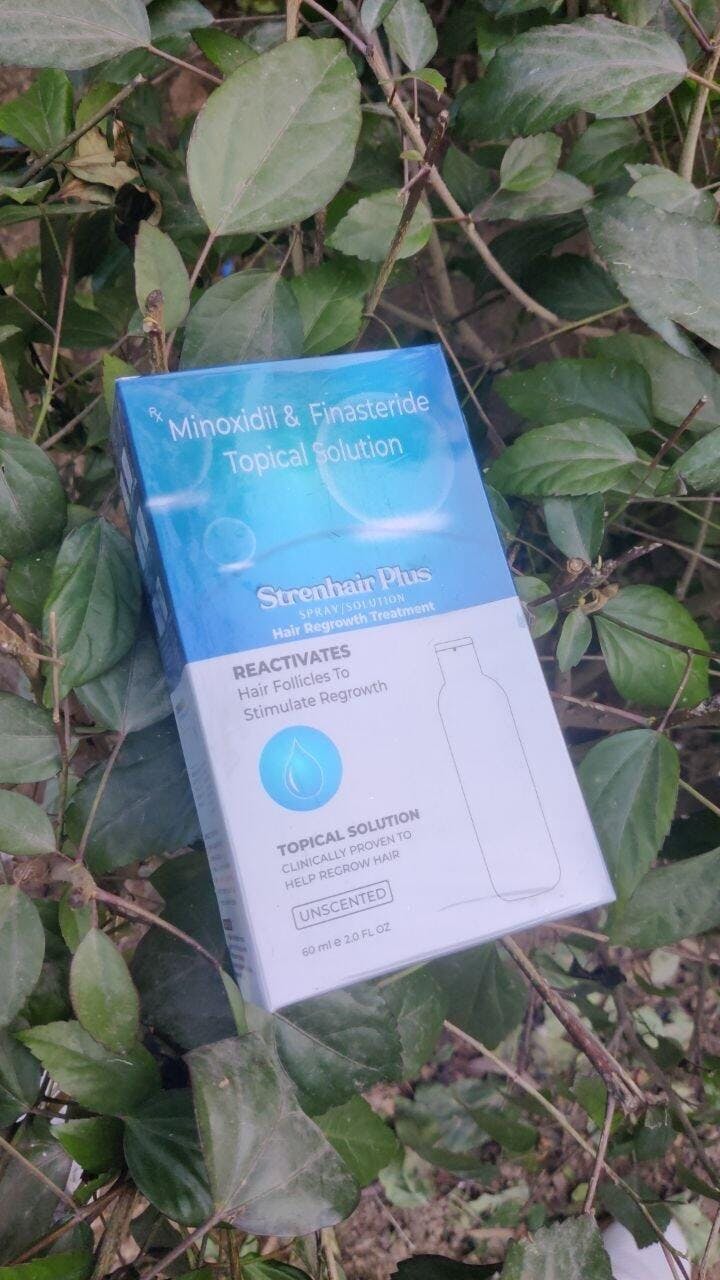 Strenhair Plus is a treatment for hair loss in men that comes in the form of a spray or solution. It combines two medicines, Minoxidil and Finasteride to address hair loss effectively.