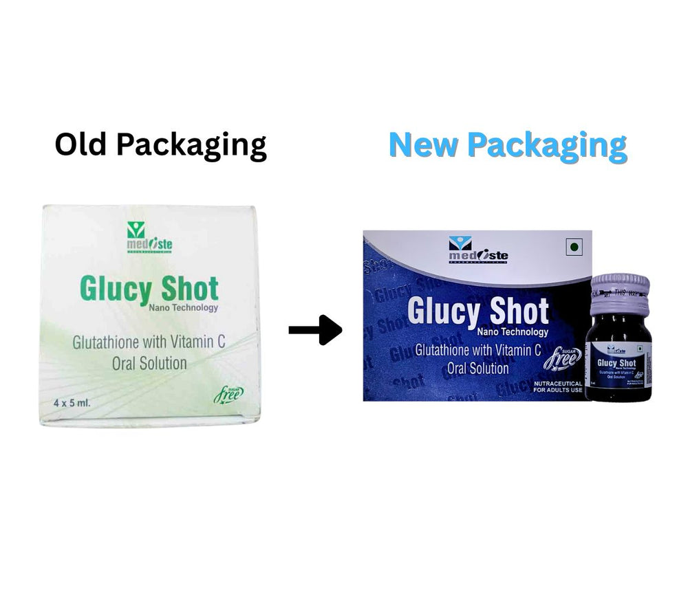 Glucy Shot is an oral solution containing glutathione, an antioxidant produced naturally in cells. It also includes Vitamin C, which supports glutathione's antioxidant functions.