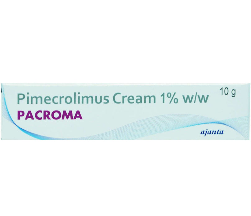 Pacroma 1% Cream 10 gm contains Pimecrolimus, which belongs to a class of medications called topical calcineurin inhibitors. It works by inhibiting the immune system's production of chemical substances that contribute to eczema, thereby reducing inflammation, redness, and itching.