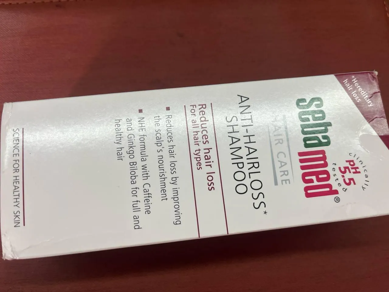 Sebamed Anti-Hairloss Shampoo features the NHE formula, which nourishes the scalp and supports healthy hair growth. It contains caffeine and Ginkgo biloba extract, known for their properties in improving hair structure and promoting hair health.