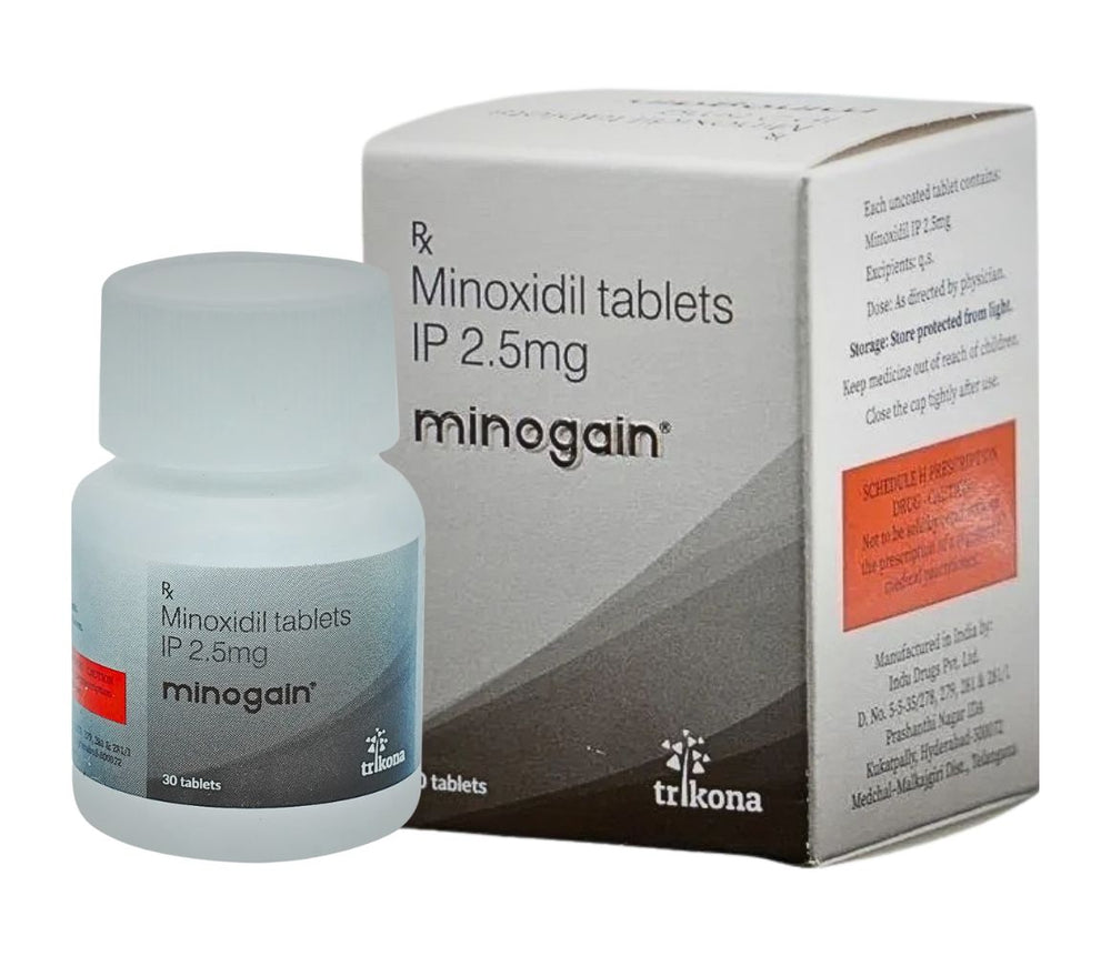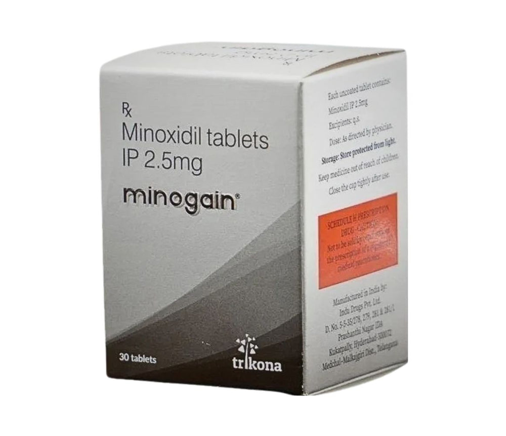 Minogain 2.5 mg Tablet is used in the treatment of hair loss. It slows down the progression of hair loss and promotes hair growth by increasing blood flow to hair follicles, achieved by widening the blood vessels.