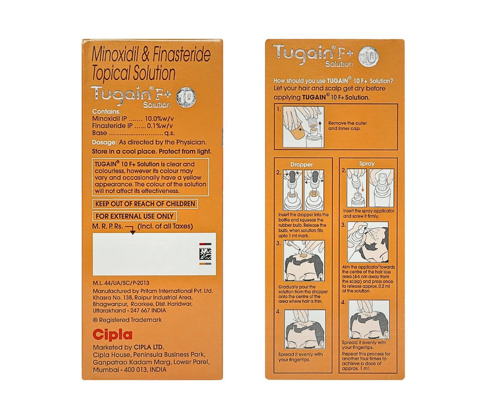 Women should avoid using Tugain F+ 10 Solution because it contains minoxidil and finasteride. According to FDA guidelines, women should only use minoxidil 2% for hair loss. It's best to consult a doctor before considering this combination medicine.